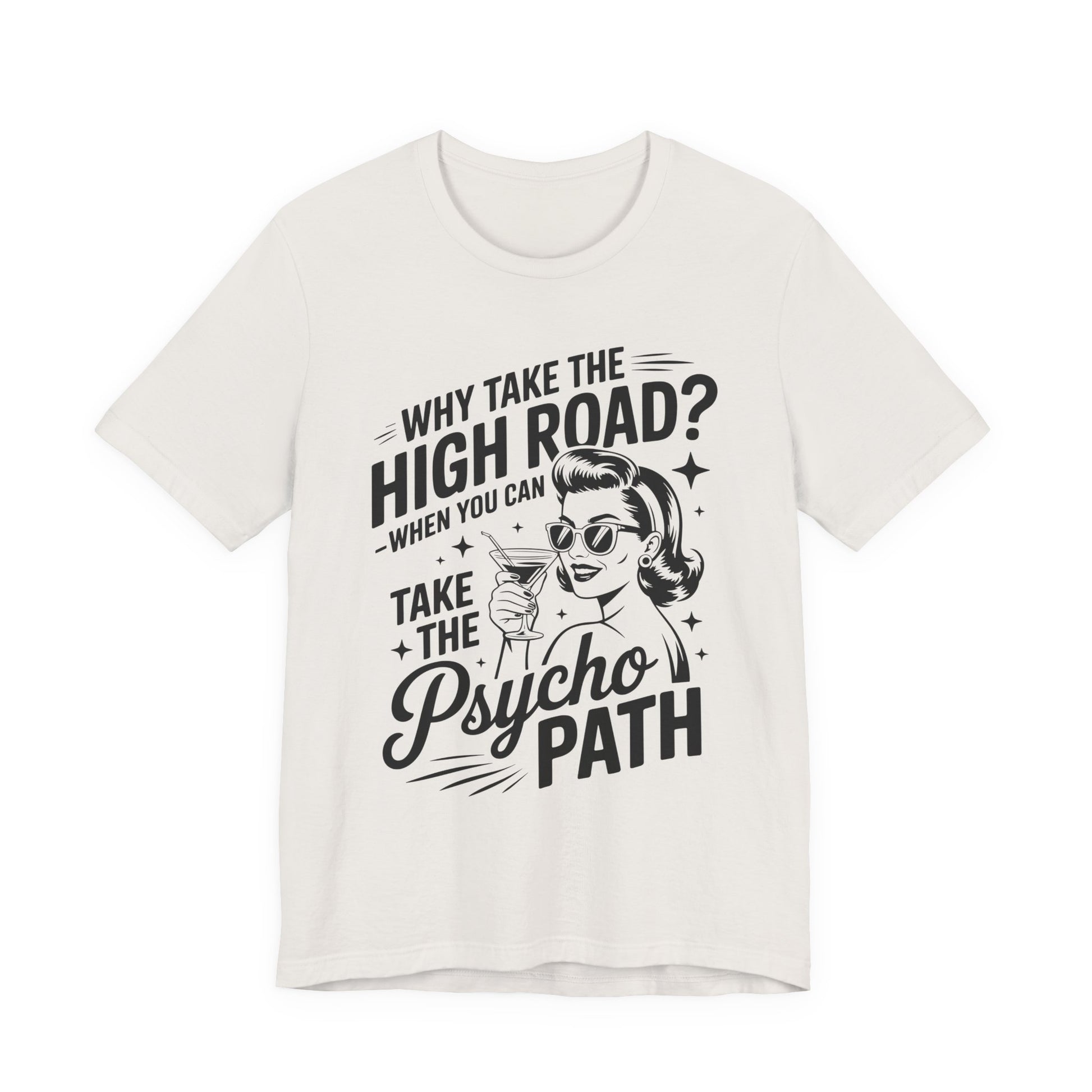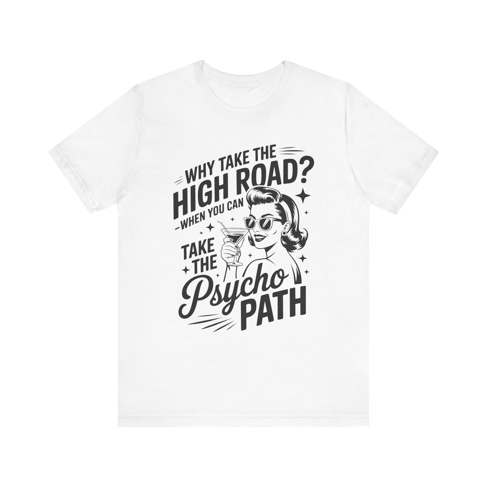 Why take the high road when you can take the Psycho Path T-ShirtWitch Tee - Funny Graphic T-Shirt, Halloween Gift, Casual Wear, Cat Lover Shirt, Spooky Season Apparel